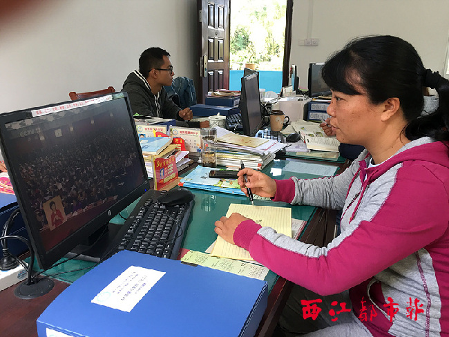 陳賢愛通過電腦觀看十九大開幕的網(wǎng)絡(luò)直播。