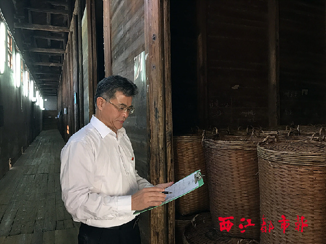 何志強(qiáng)在公司的木板干倉檢查六堡茶的陳化情況。