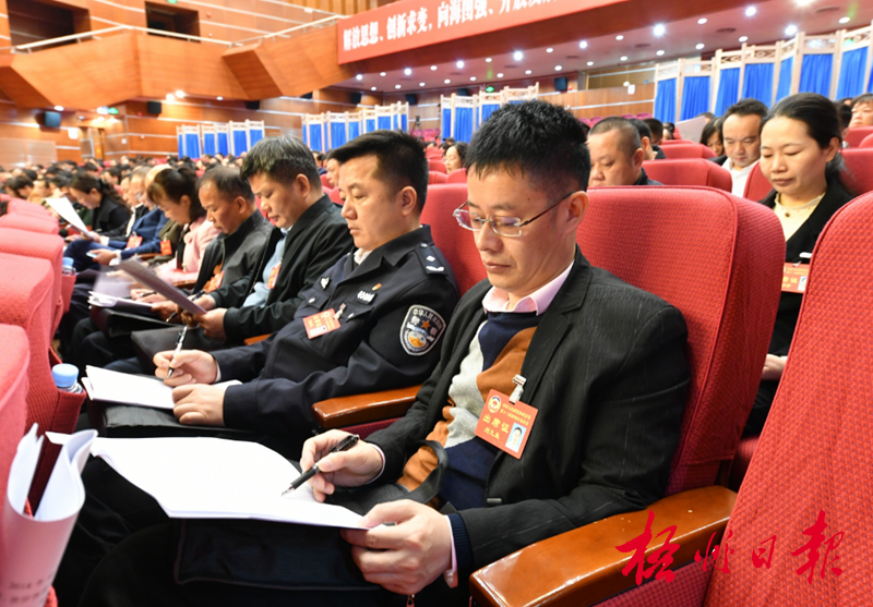 2月1日,與會委員認真聽取報告。記者 何鎏 攝