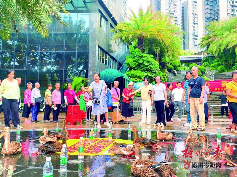 趣味游園活動備受居民喜愛,無論是猜燈謎,還是趣味拋圈,都吸引了不少居民排隊參與,歡笑聲此起彼伏?!爸星锕澘斓搅耍@只鴨子可以在中秋團圓宴上和家人們一起分享。”居民黃叔叔高高舉起自己的“戰利品”,樂呵呵地跟老伴商量著。