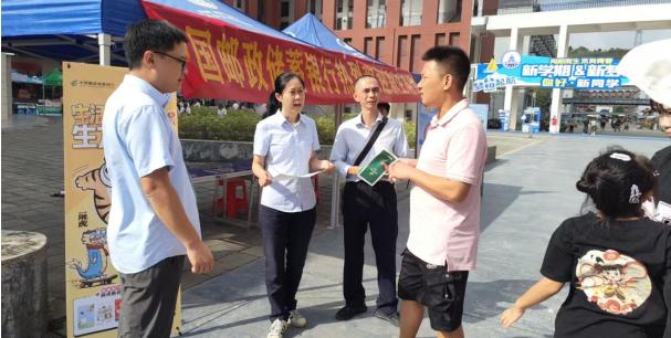 本次活動內容豐富,形式多樣。郵儲銀行梧州市分行工作人員通過發放宣傳折頁、設置咨詢臺、現場互動講解等多種方式,聚焦與學生和家長密切相關的金融安全熱點問題,量身定制了差異化的宣傳內容,吸引了眾多學生及家長積極參與。