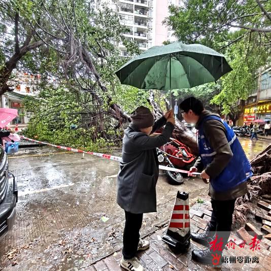 大樹倒伏擋路 多方迅速清障 萬秀區富民街道棗沖社區聯合多部門保障居民安全出行