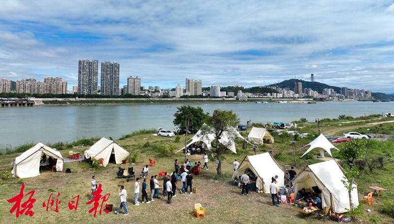 11月9日,市民在西江邊野餐營(yíng)地游玩(無(wú)人機(jī)照片)。